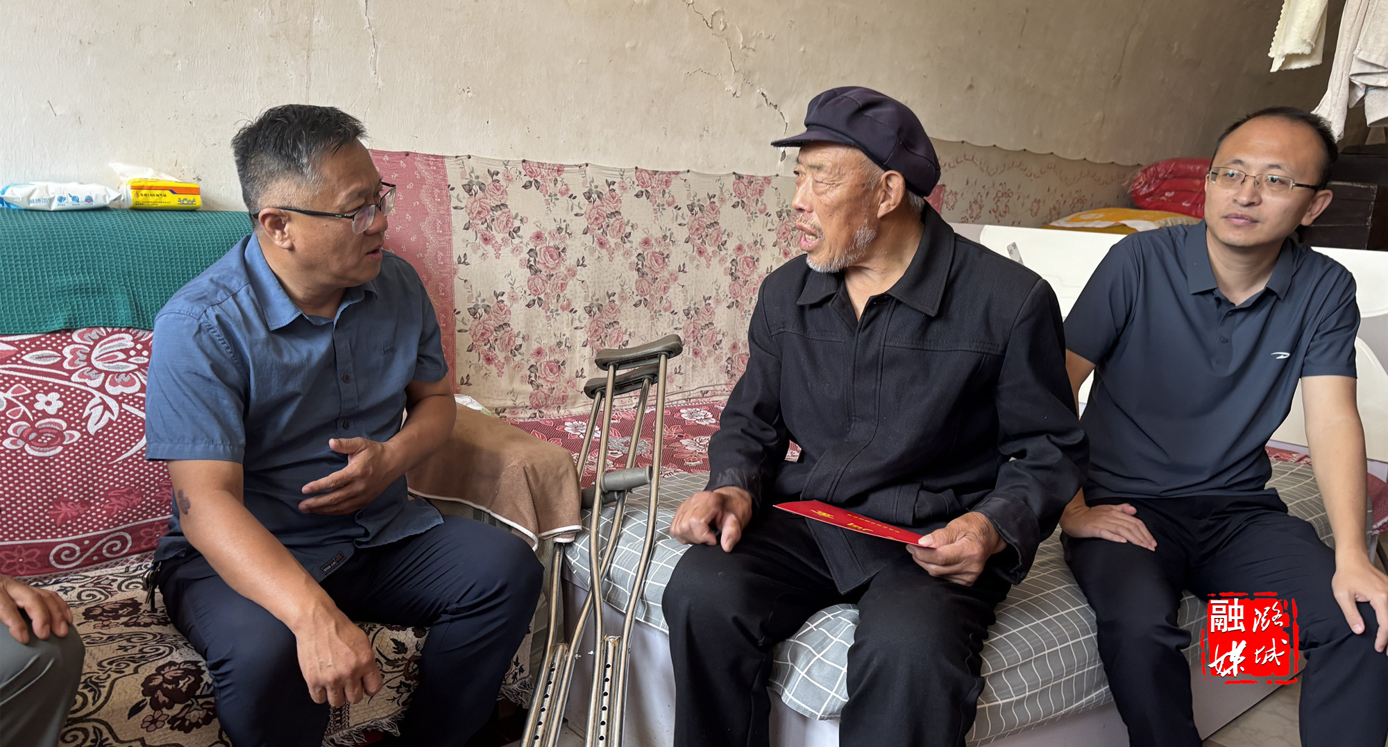 ▲微子镇相关负责人在漫流河村走访慰问困难党员。