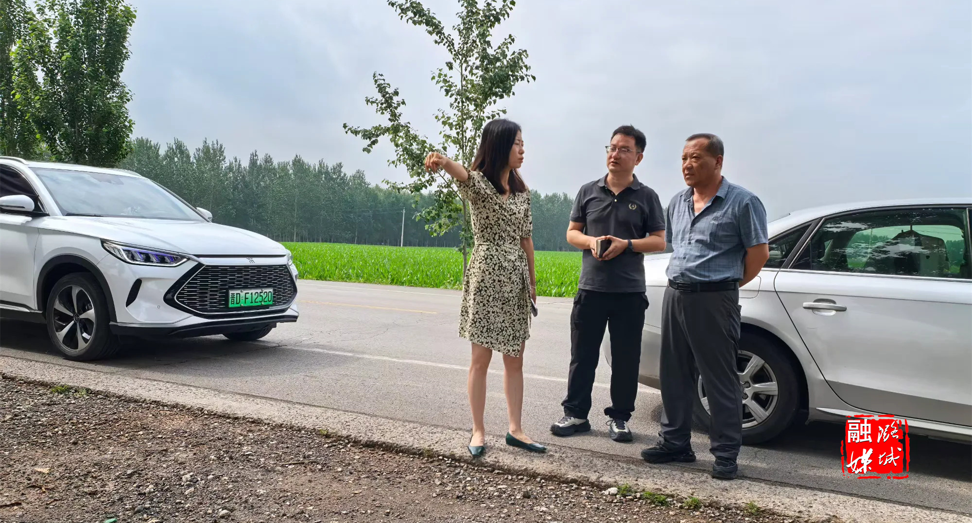 ★6月30日,微子镇相关负责人在微子村查看324省道改造工程建设进度。