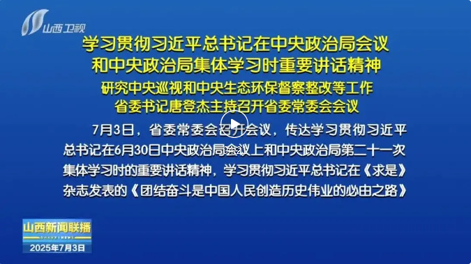 7月3日,省委常委会召开会议,传达学习贯彻习近平总书记在6月30日中央政治局会议上和中央政治局第二十一次集体学习时的重要讲话精神,学习贯彻习近平总书记在《求是》杂志发表的《团结奋斗是中国人民创造历史伟业的必由之路》重要文章,传达贯彻张国清同志在晋调研指示精神,听取中央巡视边巡边改、中央生态环保督察边督边改工作情况汇报,研究部署下一步工作。省委书记唐登杰主持会议。