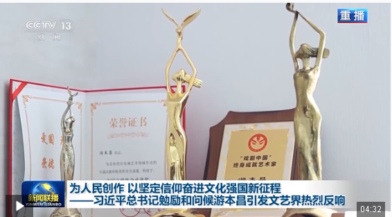 国家话剧院院长 田沁鑫:习近平总书记对游本昌同志的勉励和问候,让国家话剧院全体员工倍感振奋,为我们未来做好新时代的文艺工作指明了方向,提供了遵循。我们要以习近平文化思想为指引,为推动社会主义文化大发展、大繁荣,建设文化强国贡献力量。