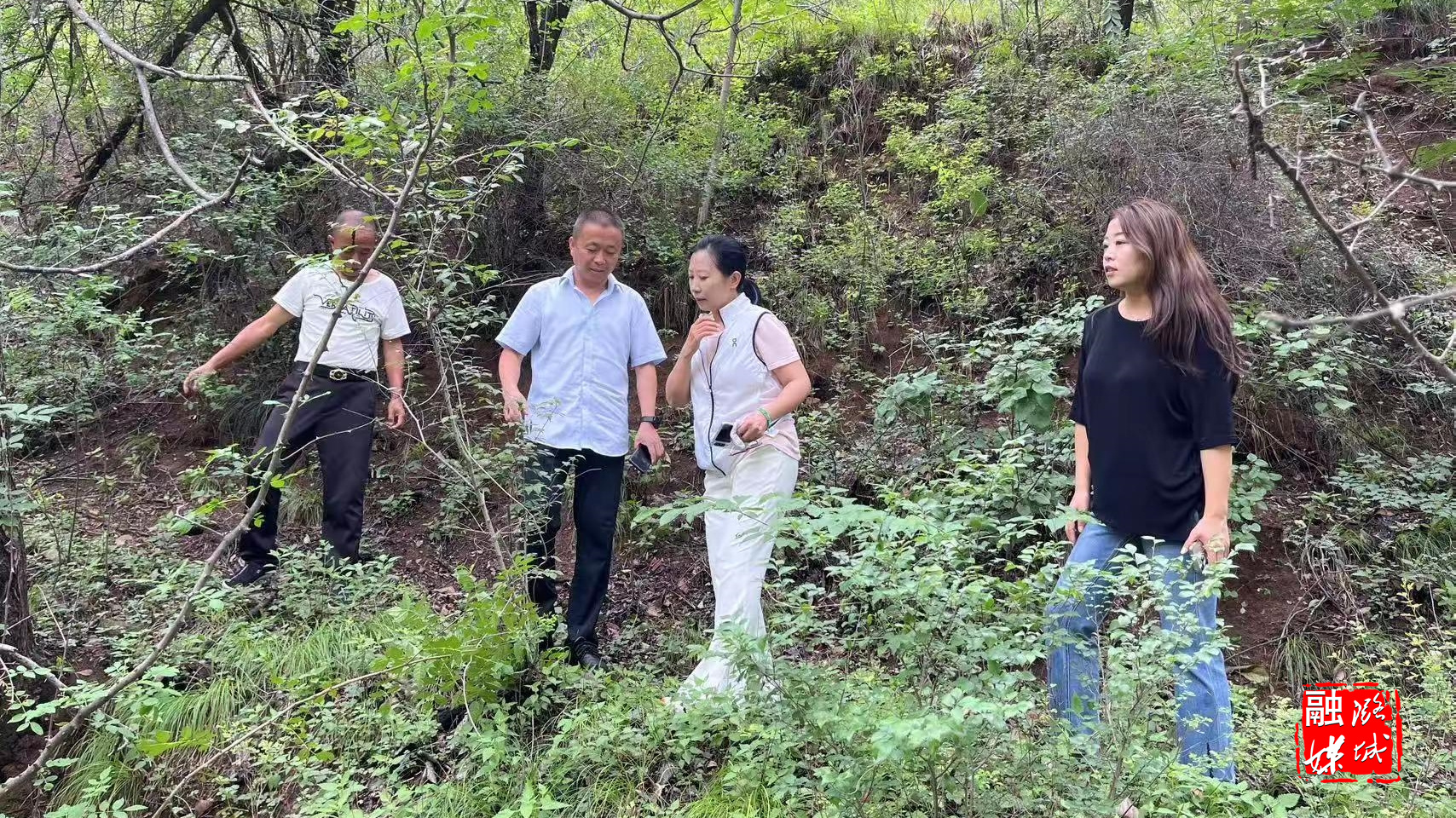 ★7月8日,黄牛蹄乡负责人与中华蜂项目负责人到辛安村安陵寺片区实地查看项目进度,勘查生态养殖地块。