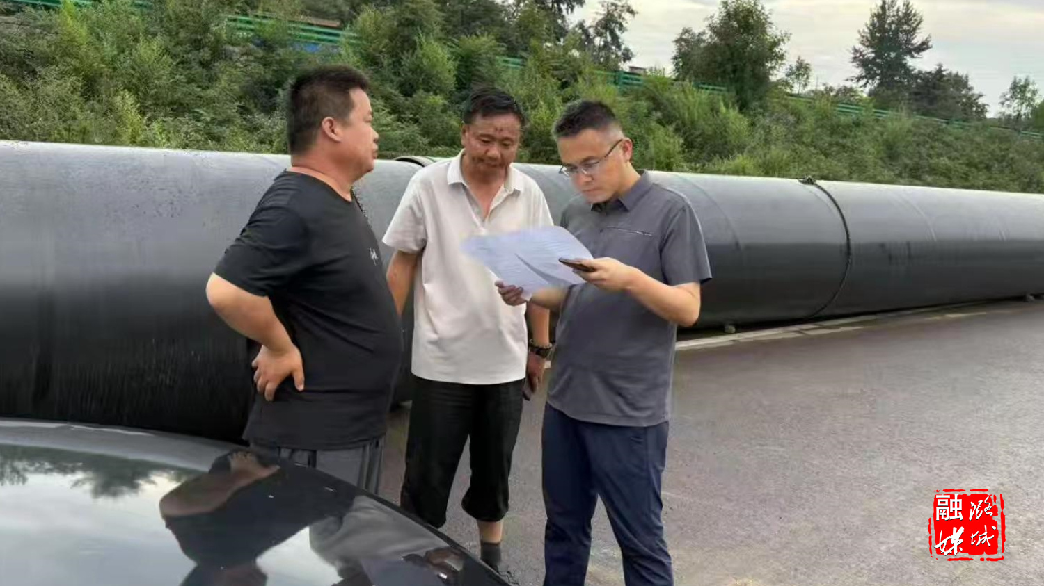 ▲区交通运输局相关负责人开展汛期道路安全隐患排查。