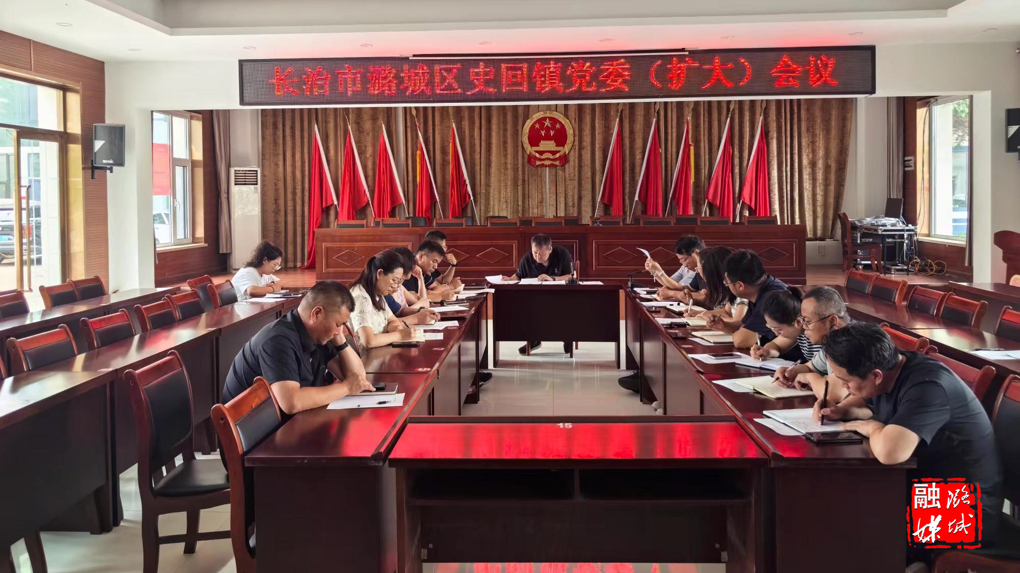 ★7月8日,史回镇召开党委(扩大)会议,就近期重点工作进行安排部署。