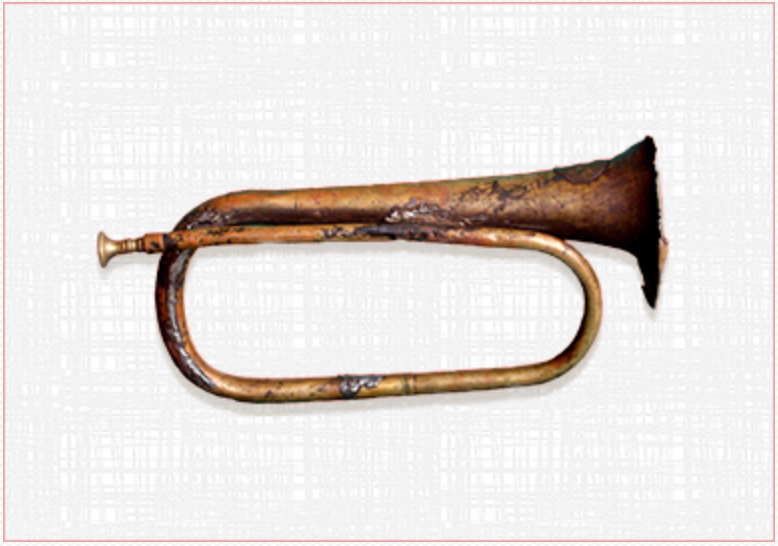 这是一把1936年红军东征时使用过的军号。如今,号身上依旧留有战争硝烟的痕迹。