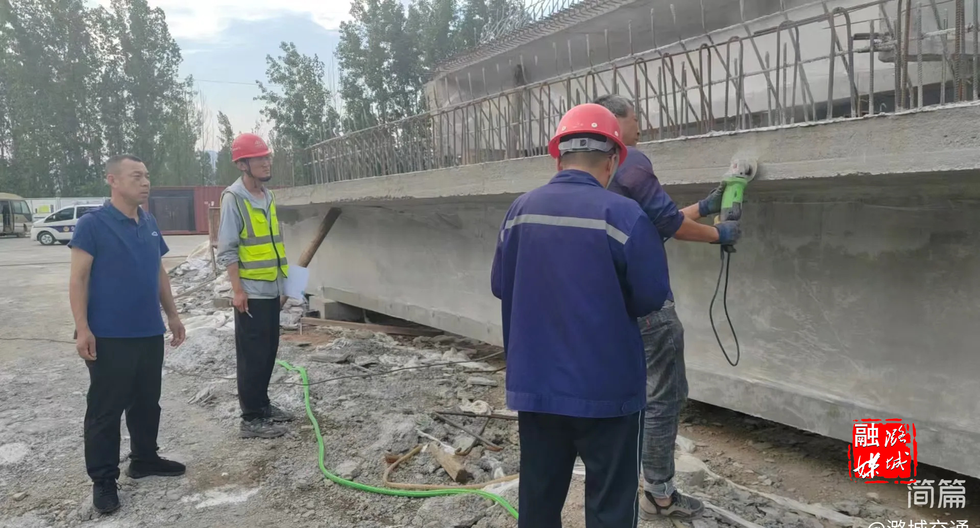 ▲区交通运输局负责人在店辛线施工现场督导汛期安全工作。