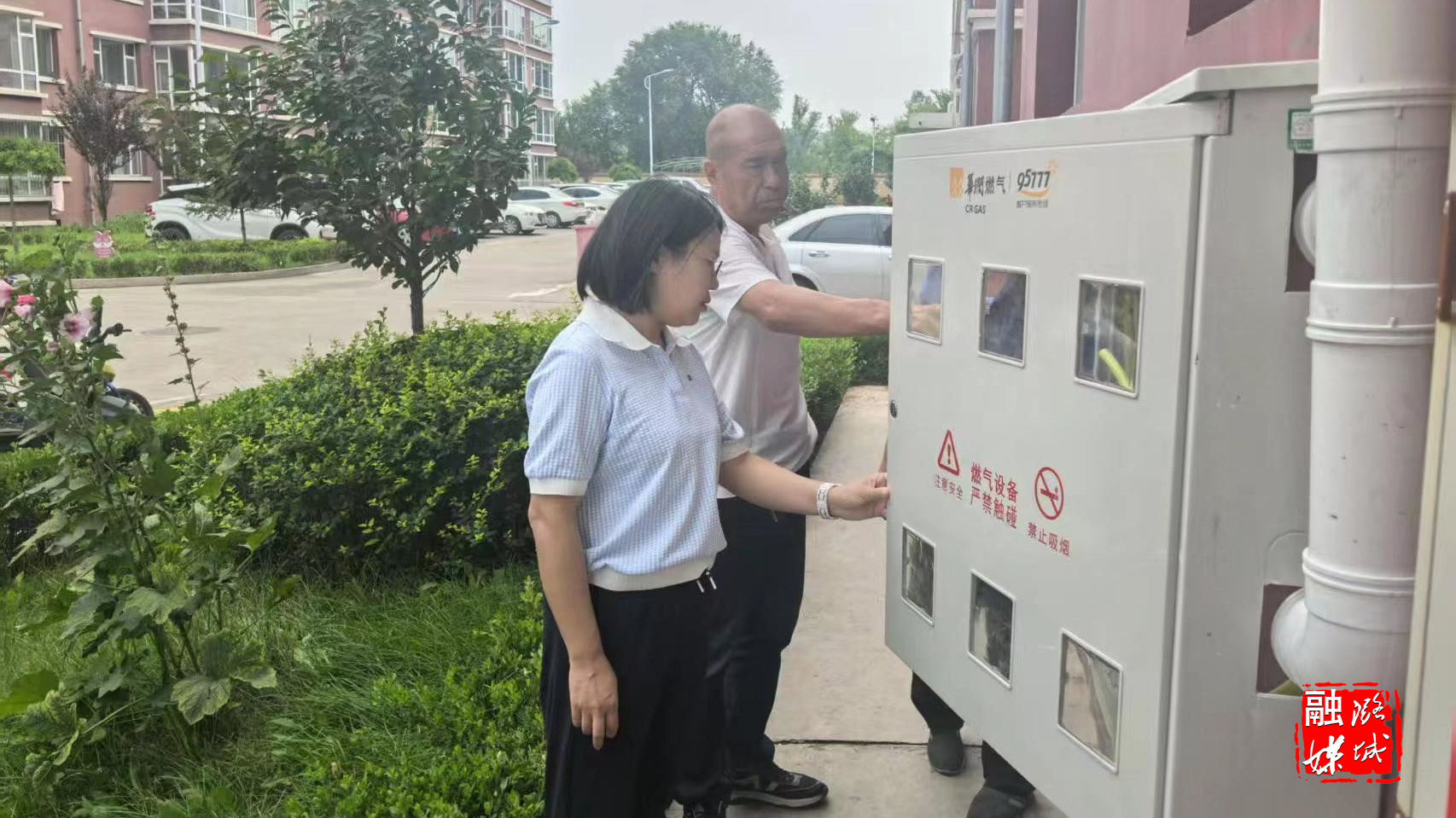 ▲店上镇负责人到柳江沟小区实地查看燃气改造工程建设情况。
