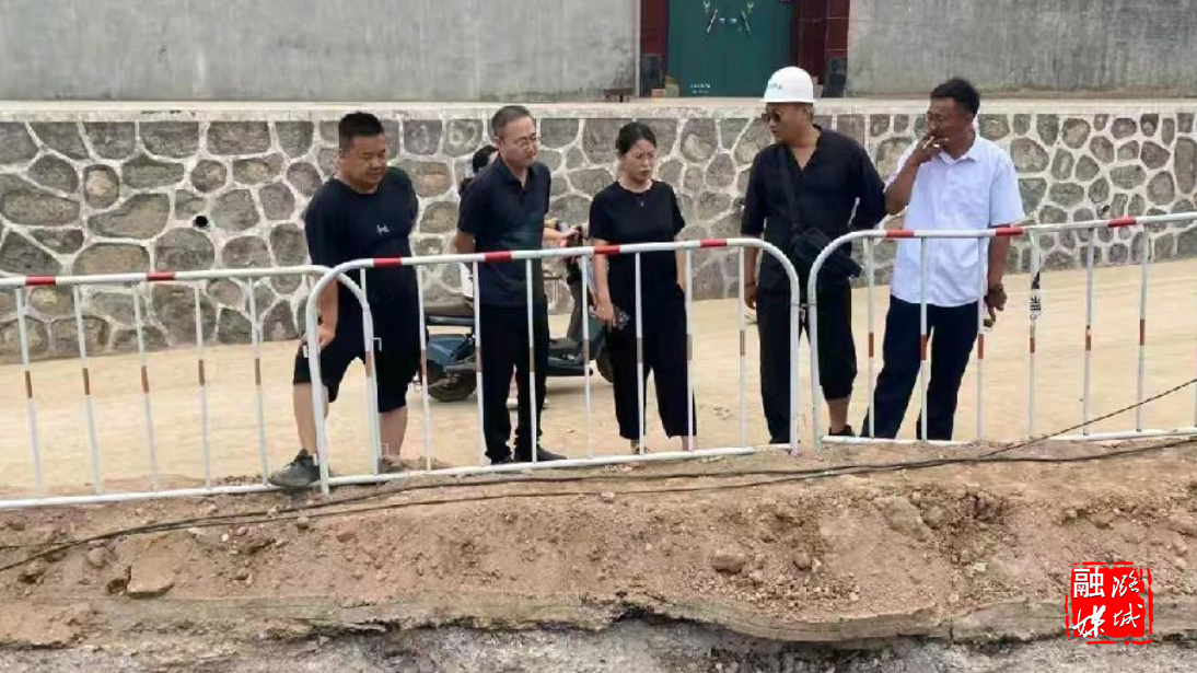 ▲微子镇相关负责人同水网改造负责人商讨路面恢复方案。