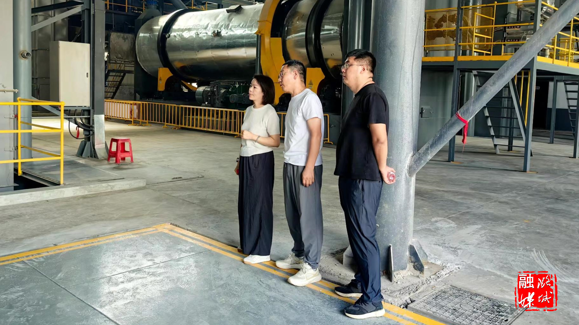 ▲史回镇相关负责人到福尔福新材料科技有限公司查看新建钙基新材料制备车间及生产线项目投产情况。