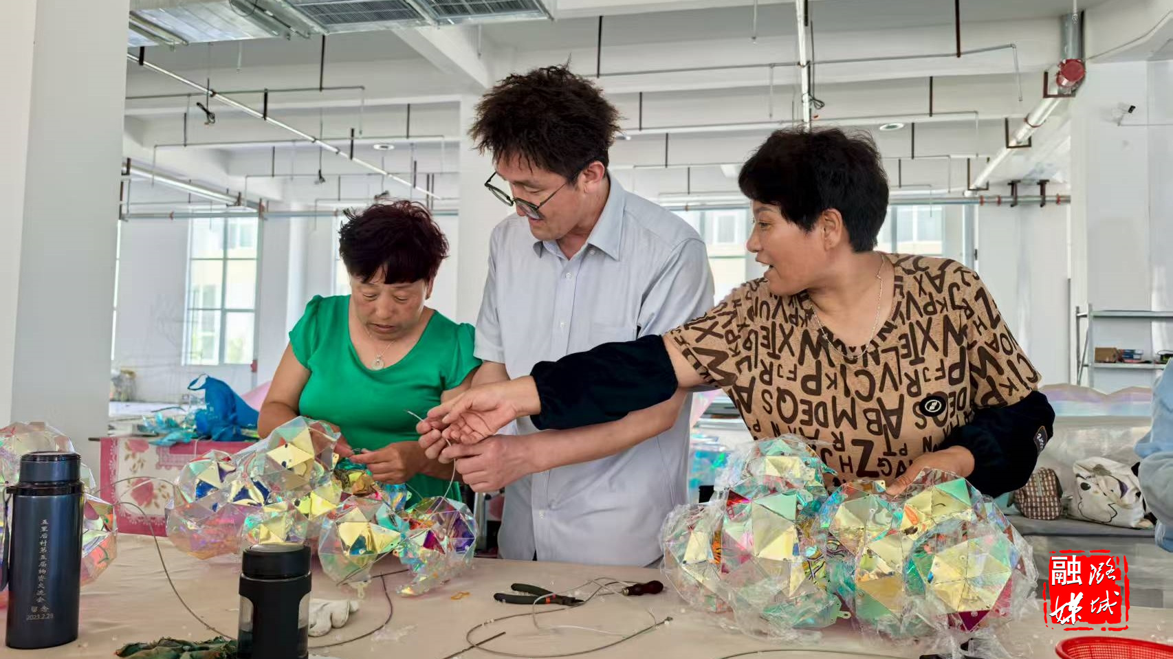 员工王丽霞边工作边向记者诉说:“我是西天贡村人,从小就喜欢手工,在这里工作需要学的东西很多,比如说色彩配比、接电、各种手工,每个月能挣几千块钱,使我的生活更加充实了。”