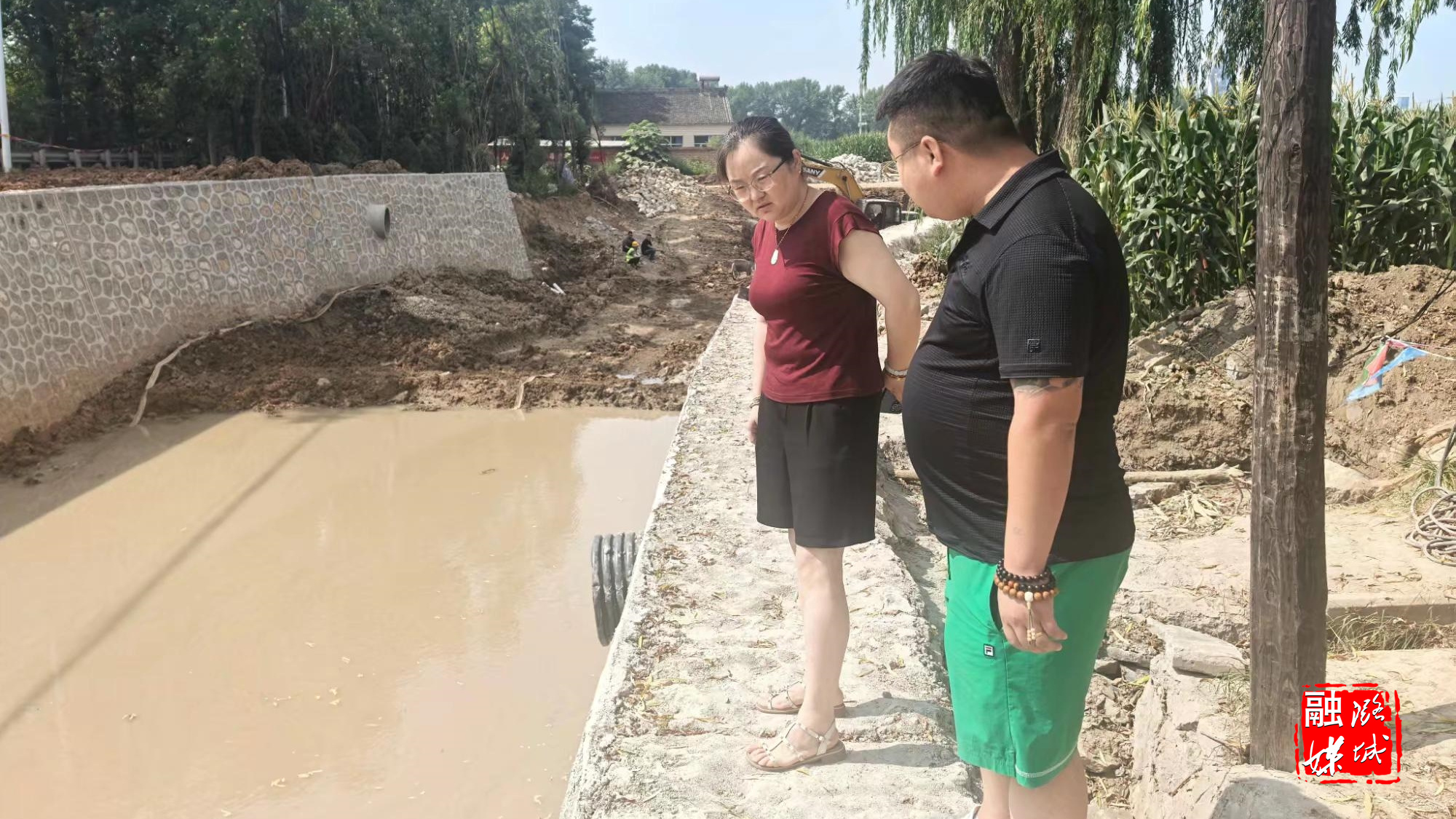 ▲翟店街道工作人员到村协调推进人居环境整治项目进度。