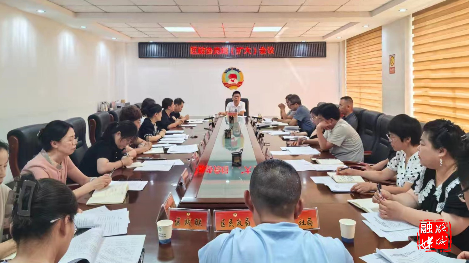★8月7日,区政协召开党组(扩大)会议。区政协党组书记、主席琚海鹏主持,区政协党组成员、副主席靳忠玲,党组成员、秘书长董世坤出席。区政协副主席李俊华列席。区人社局、区民政局、区残联相关单位负责人,区政协机关全体人员参加。