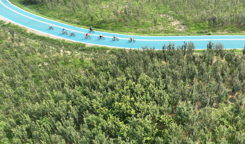 2024年7月10日,自行车爱好者在石家庄市环城绿道北线骑行休闲。近年来,石家庄依托滹沱河、环城水系等优质景观资源,通过架设桥梁、提升景观和完善绿地等措施,打造景美、智游、畅达的城市绿道健身体系,加强环城绿道与中心城区串联衔接,方便市民无障碍步行或骑行,提升群众生活幸福感和获得感。