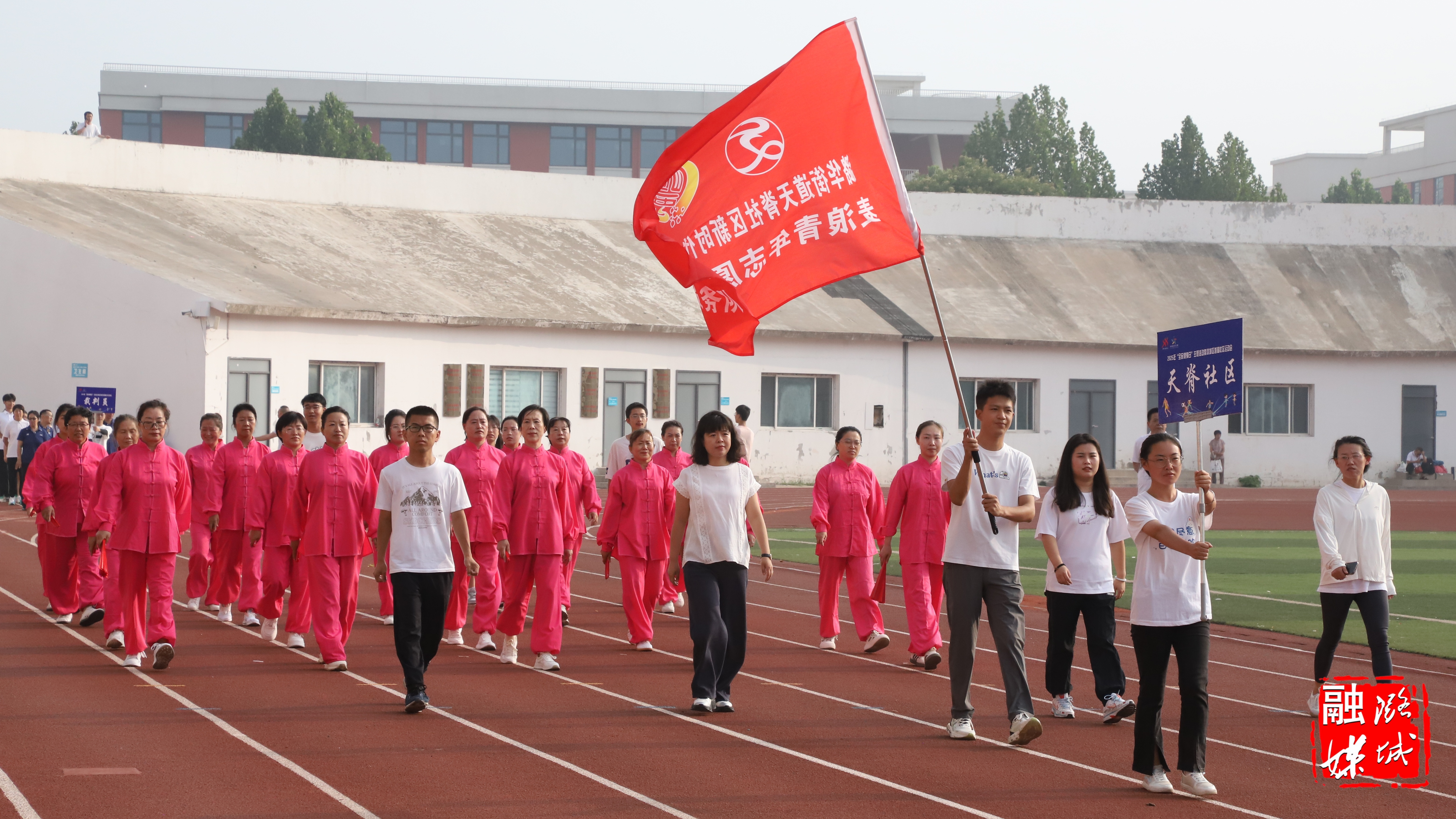 早上7时30分,伴随着激昂的运动员进行曲,9支社区代表队迈着整齐的步伐依次入场。队员们身着统一队服,精神抖擞、口号嘹亮,既有朝气蓬勃的青年力量,也有从容稳健的中老年身影,充分展现了社区居民积极向上的精神风貌。