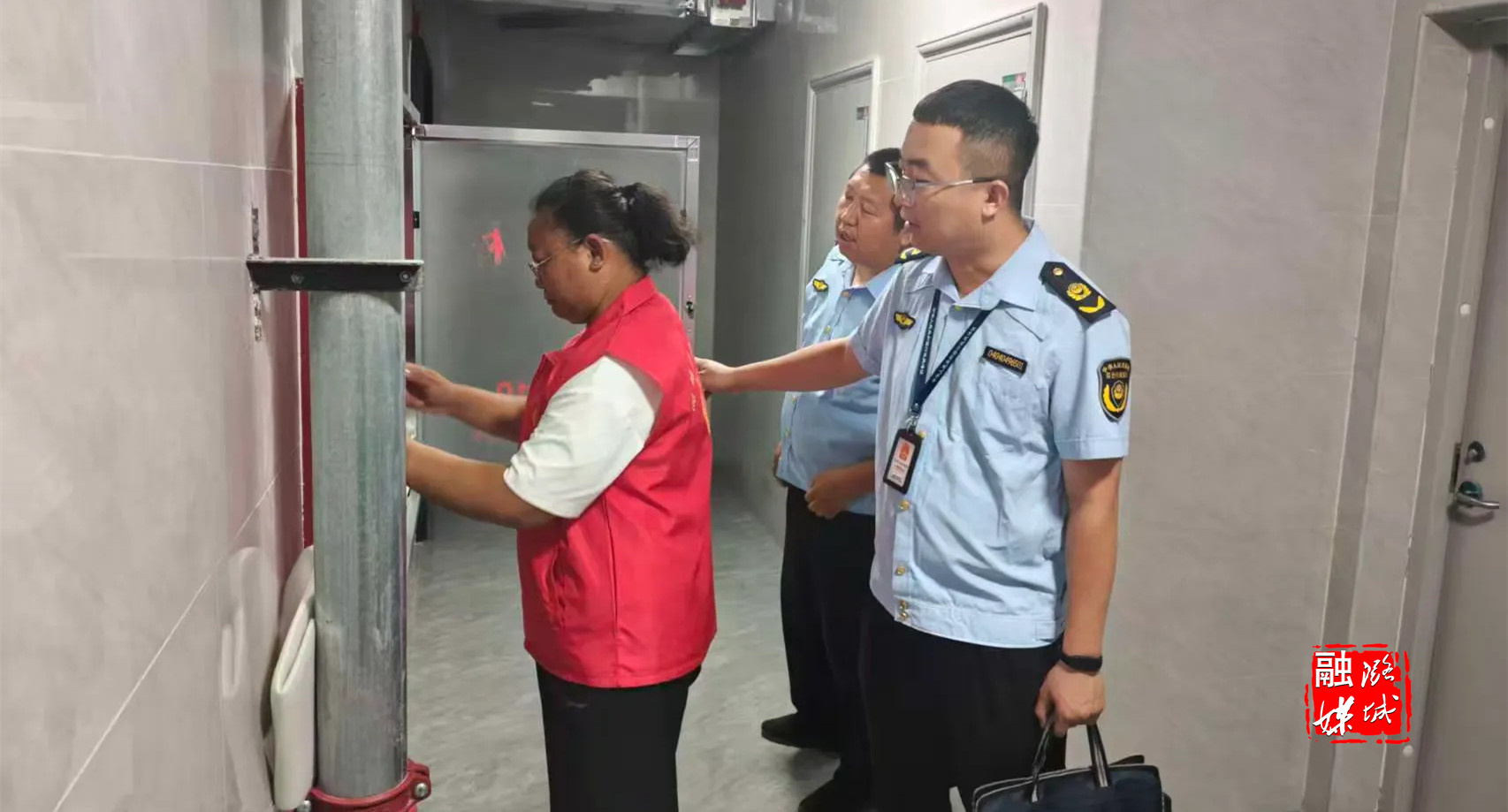 ★8月13日,潞华街道工作人员到滨河社区查看小区消防安全情况。