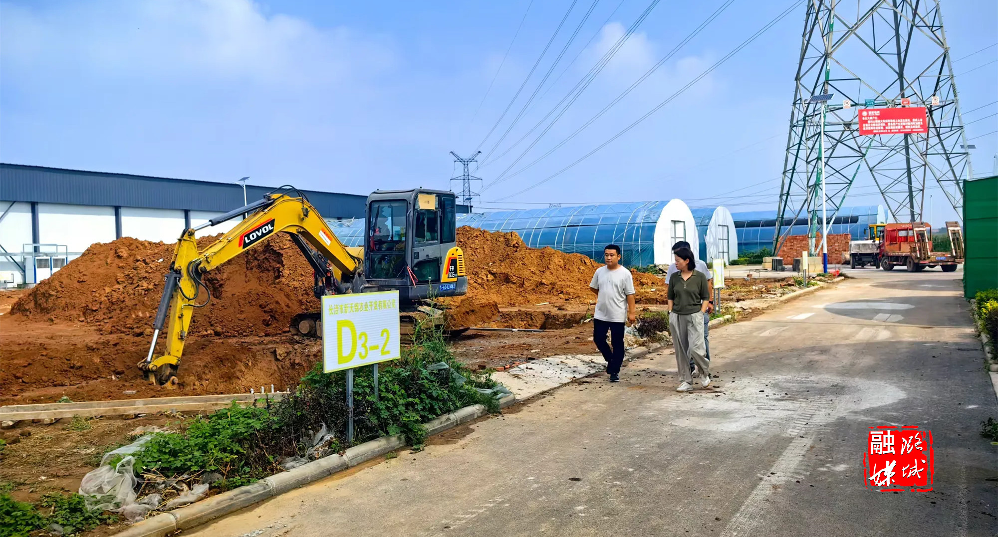 ▲史回镇相关负责人到食用菌现代农业产业园查看菌种培养房项目建设情况。