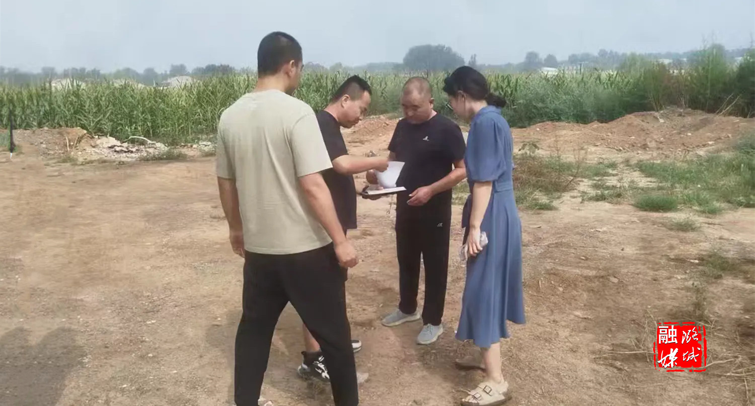 ▲店上镇相关负责人到店上村实地核查用地情况。