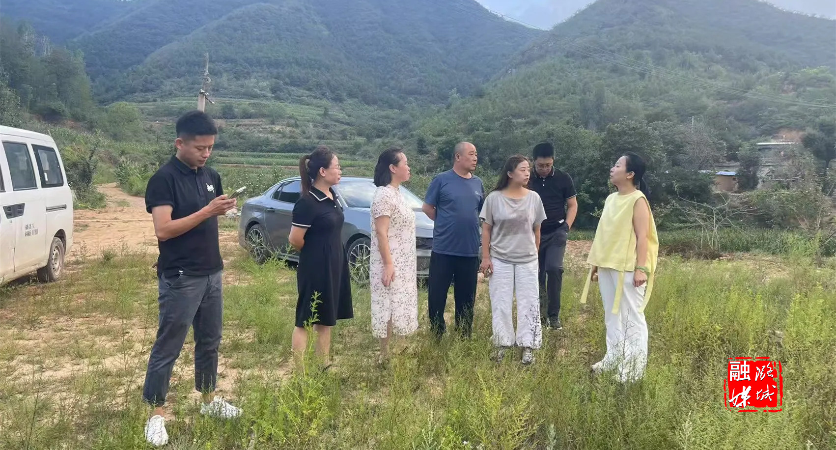 ★8月14日,黄牛蹄乡相关负责人与中华蜂项目负责人到杨庄村查看项目现场情况。