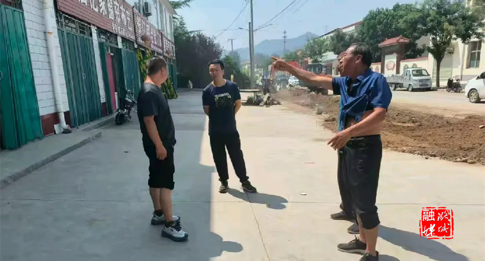 ★8月14日,辛安泉镇相关负责人在石梁村查看污水管网改造施工进展。