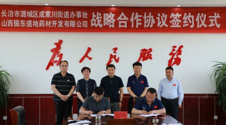 仪式上,成家川街道办事处负责人与山西振东道地药材开发有限公司相关负责人签订了战略合作协议。