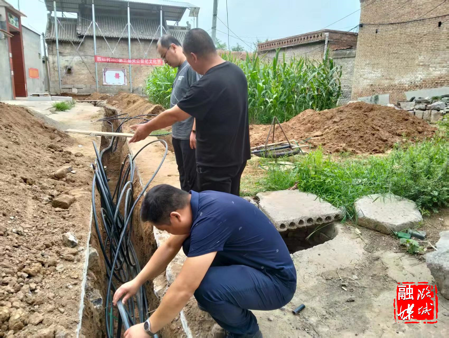 ▲成家川街道工作人员在西辿村查看城乡供水一体化工程进度。