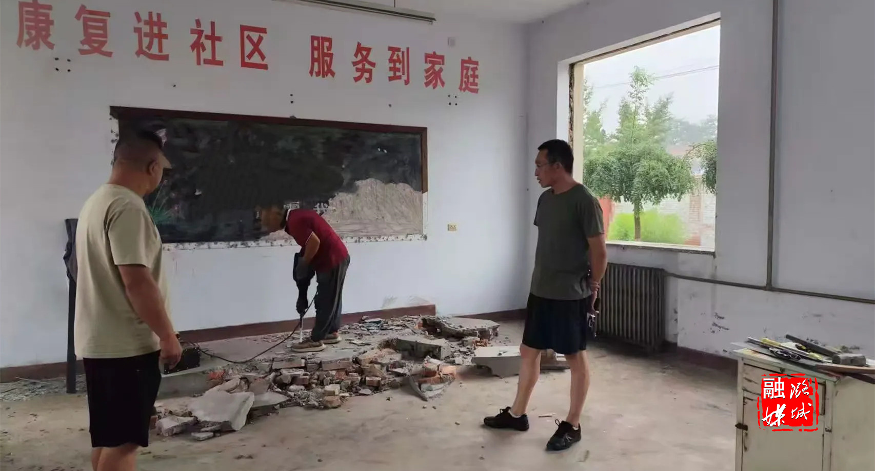 ▲成家川街道相关负责人到窑上村查看防汛器材库施工情况。