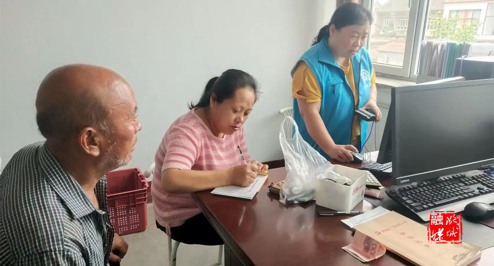 ★8月16日,史回镇各村代办员帮助村内老年人办理线上业务。