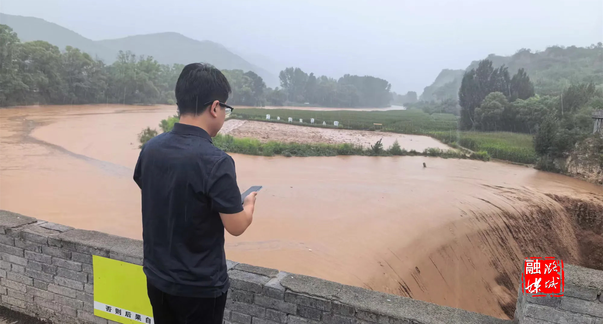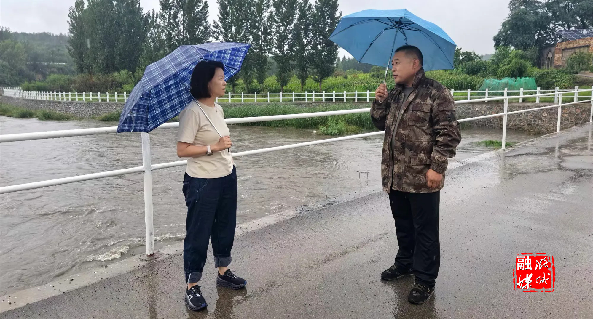 ▲史回镇相关负责人到曲里村指导防汛工作,实地查看河道行洪情况。