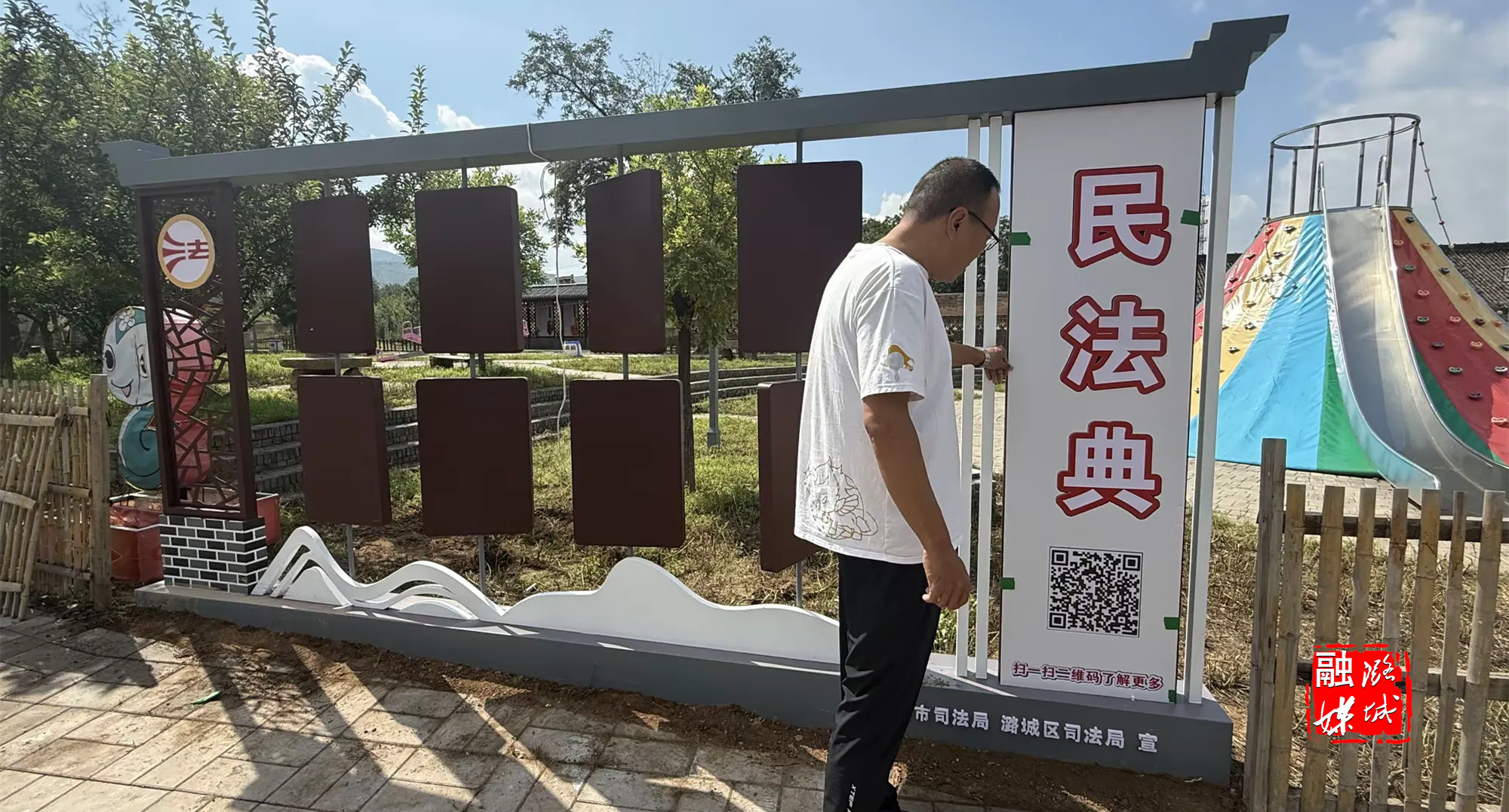 ★8月18日,区司法局工作人员到翟店街道寨上村推进法治文化阵地建设工作。