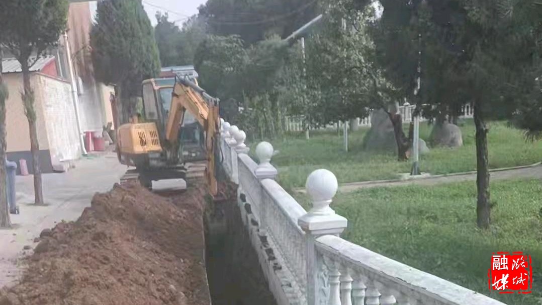 ▲店上镇石窟村加快自来水管网改造工程施工进度。