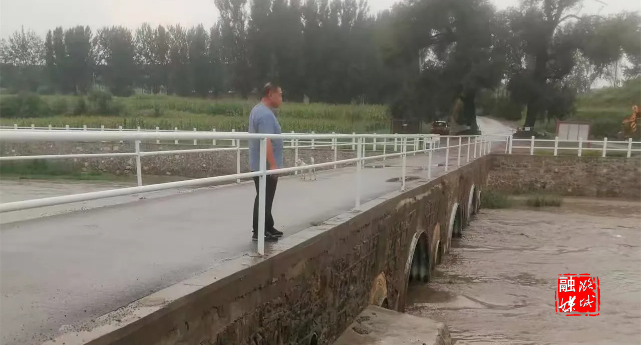 ▲微子镇相关负责人在贾街村指导防汛工作。