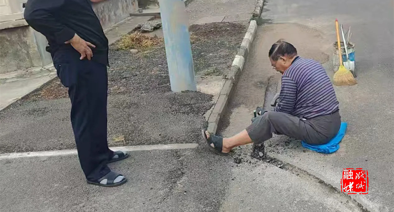 ★8月23日,成家川街道木瓜村组织工作人员维修破损路面。
