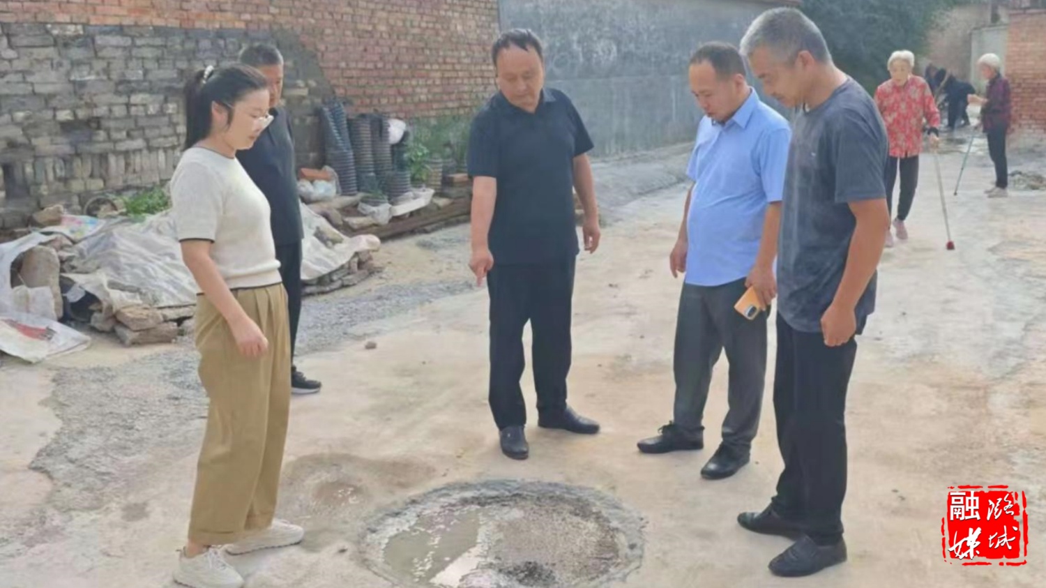 ▲成家川街道相关负责人到村推进人居环境整治工程、雨污分流工程进度。