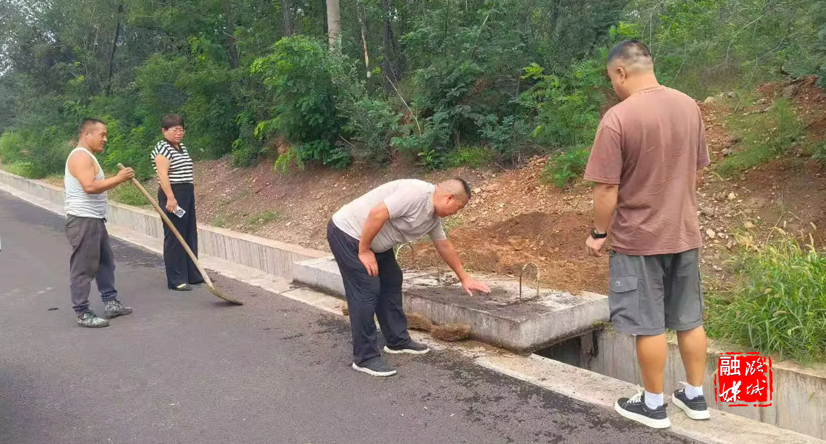 ▲店上镇曹家沟村工作人员积极开展雨后安全巡查工作。