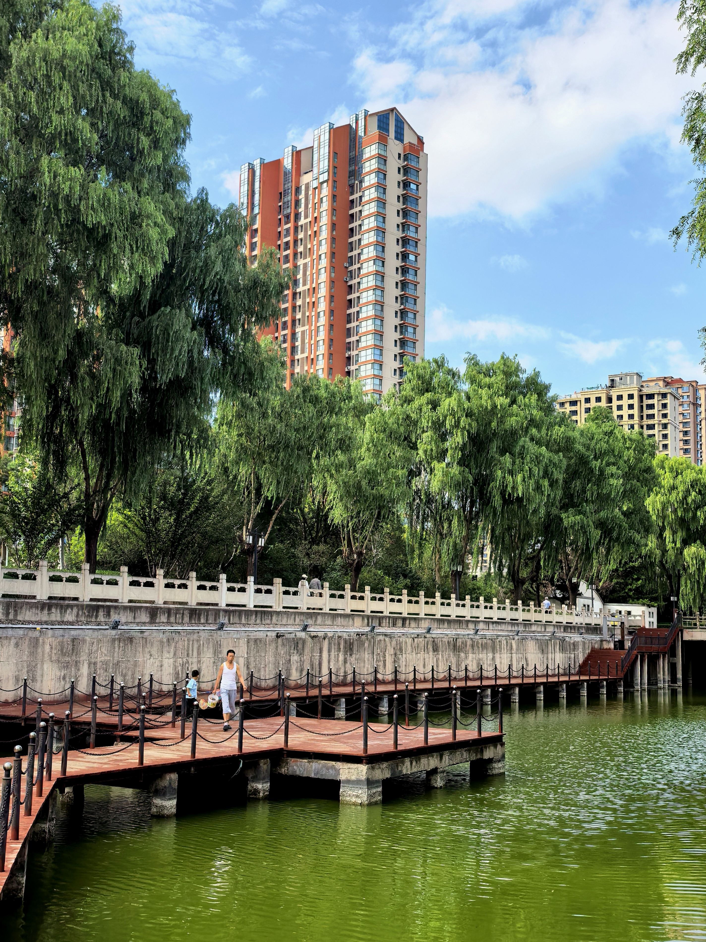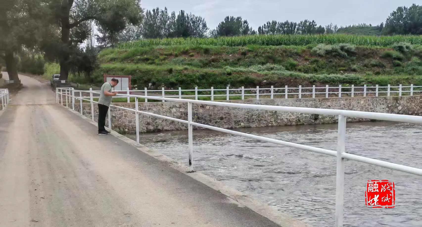 ▲史回镇曲里村工作人员在村开展巡河工作。