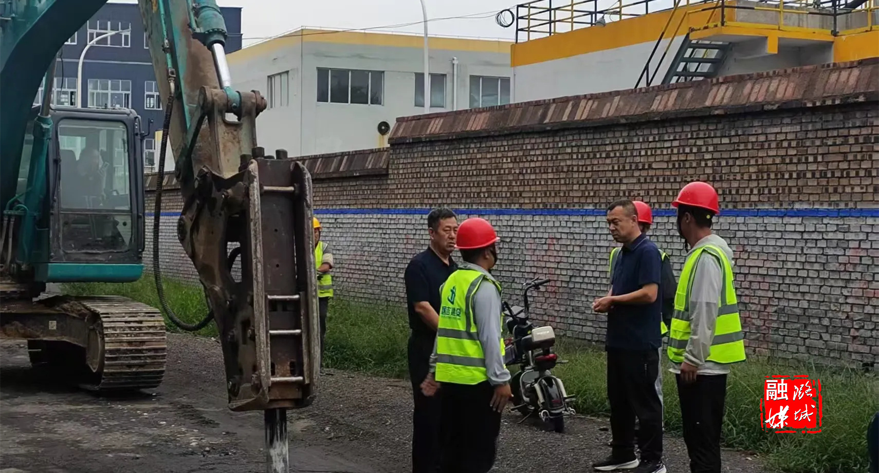 ▲区交通运输局负责人在成小线施工现场督导汛期安全。