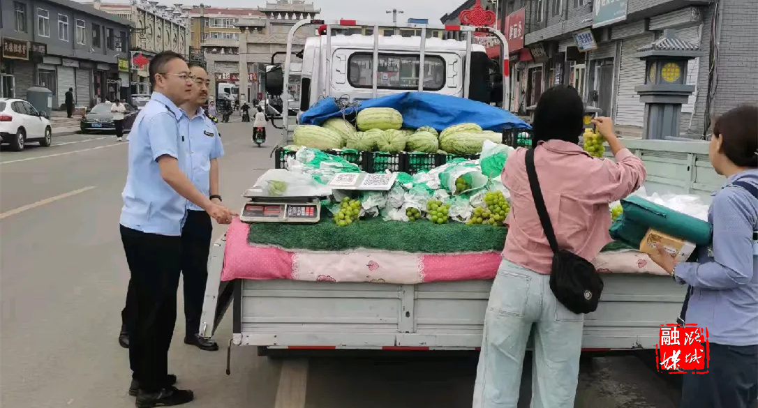 ★8月30日,微子镇相关负责人在主街道规范市场经营秩序。