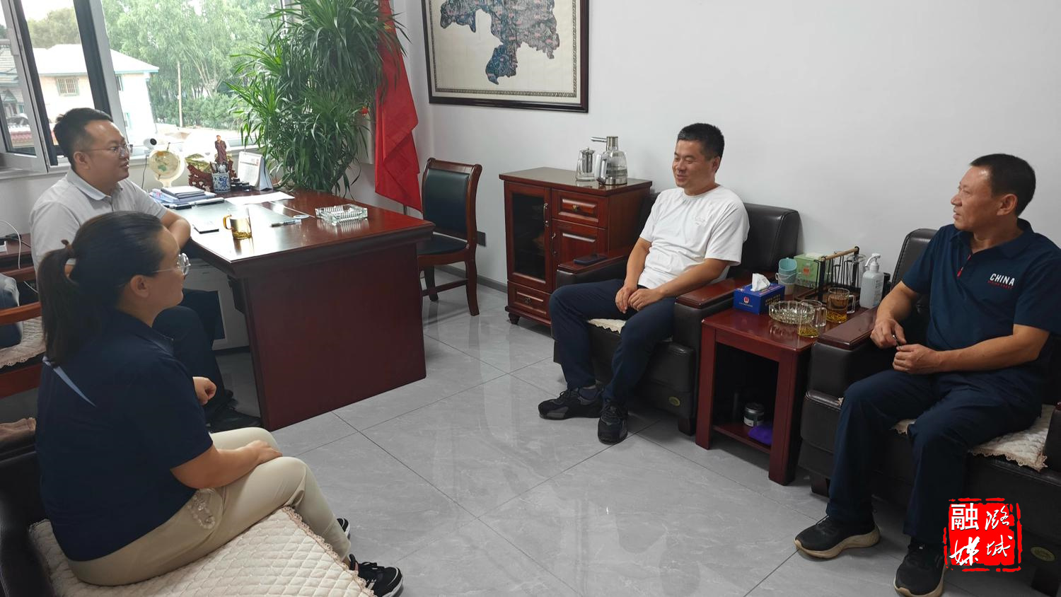 ▲店上镇相关负责人就农贸市场相关事宜进行沟通交流。