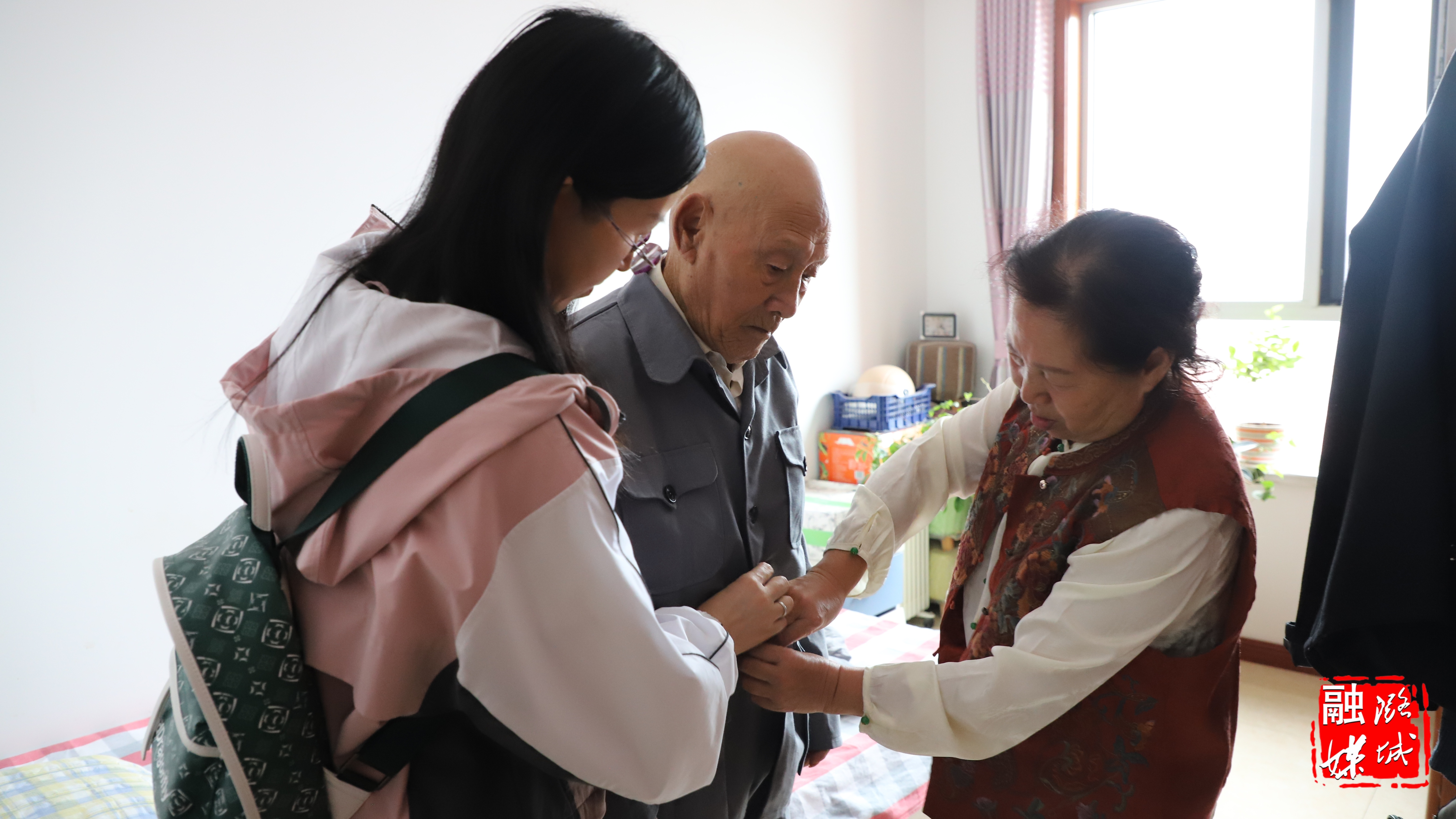同样的感动,也在家住翟店街道南舍村96岁的抗战老兵张仁秀身上上演。一个军礼,是老战士对祖国最强的告白,也是对峥嵘岁月最深的回望。陪着老人一同观看直播的翟店街道退役军人服务站站长刘帅表示:“习近平总书记说‘以铮铮铁骨战强敌,以血肉之躯筑长城’,精准地概括了老兵们当年的英勇无畏。作为当代青年,我们更觉责任重大,要继续用心关爱老兵,传承他们的精神,让更多的人铭记历史、缅怀先烈、珍爱和平、开创未来。”