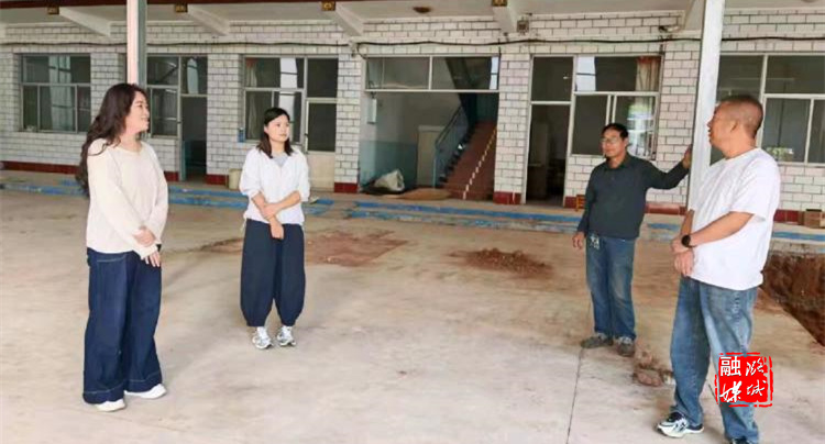 ▲微子镇工作人员在漫流岭村查看映山红农产品加工厂建设情况。