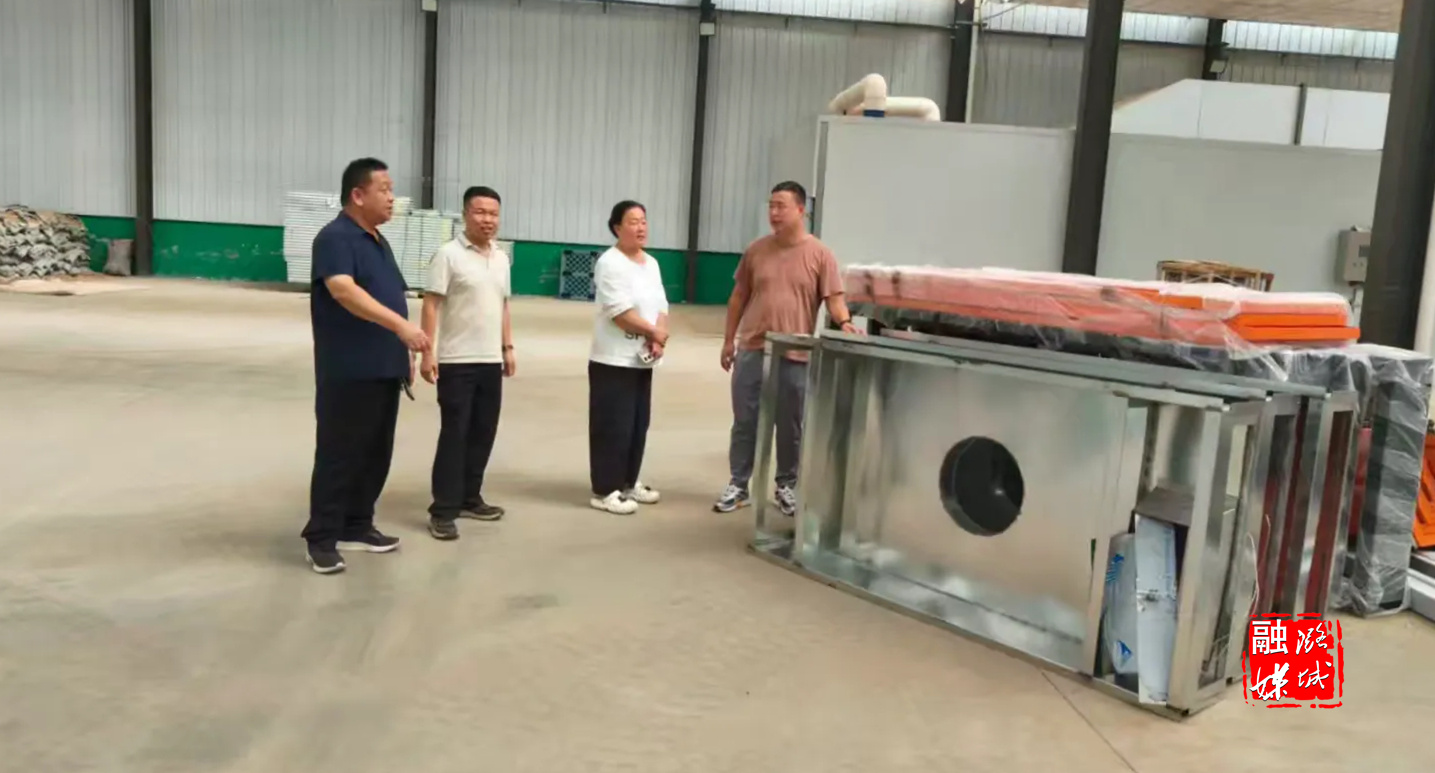 ▲辛安泉镇相关负责人在维康德济中药材有限公司查看智能化趁鲜切制联动线项目设施安装进度与项目落地情况。