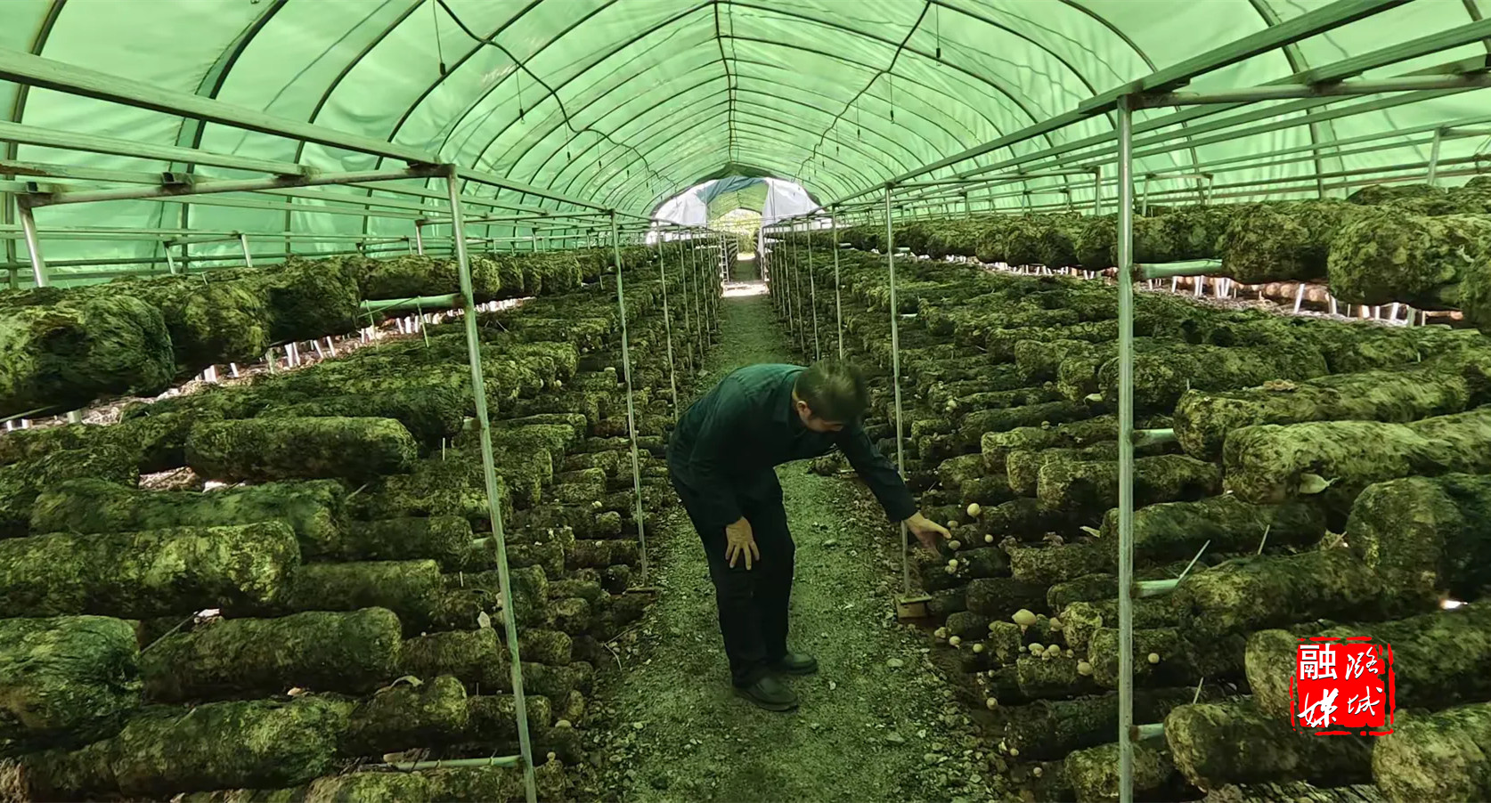 ▲黄牛蹄乡工作人员到李庄村查看香菇大棚生产经营状况。