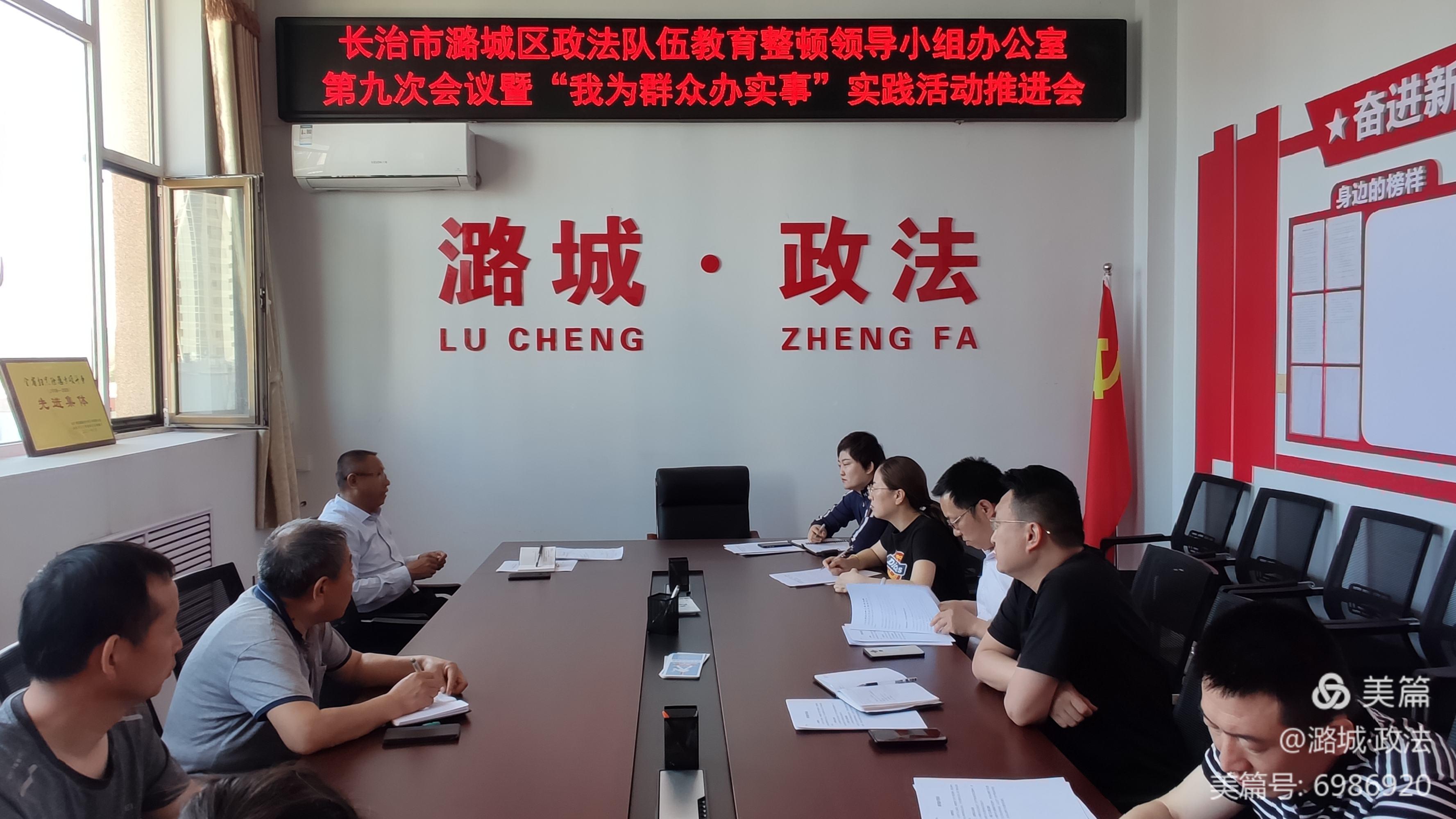 ▲5月27日上午,潞城区召开政法队伍教育整顿领导小组办公室第九次会议暨“我为群众办实事”实践活动推进会,贯彻落实区委书记秦苏良关于政法队伍教育整顿“我为群众办实事”实践活动的批示要求,对政法机关和政法干警开展好“我为群众办实事”实践活动进行具体安排部署。会议还同时安排了线索办理、顽瘴痼疾整治、建章立制、队伍建设巡查、宣传引导等相关工作。区教育整顿办有关负责同志主持会议并安排工作,各政法机关教整办负责同志参加会议。
