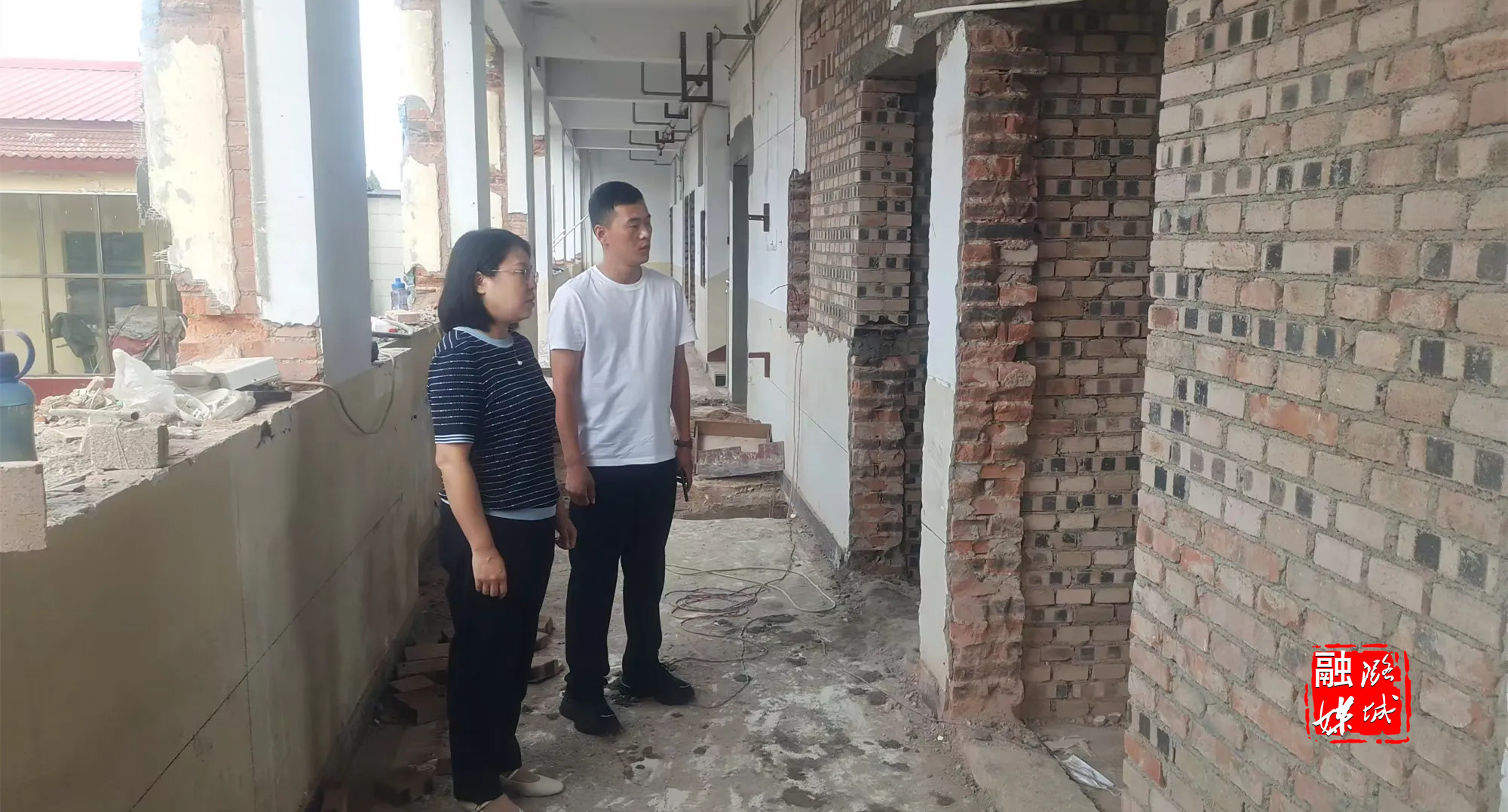 ▲店上镇负责人实地查看店上养老院建设进展情况。