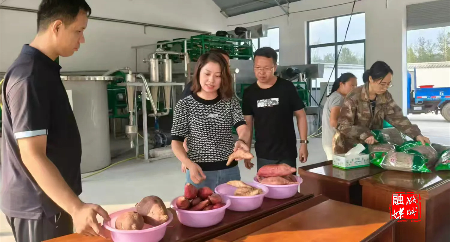 ▲辛安泉镇负责人在古城村红薯淀粉加工厂查看助残帮扶项目建设情况。