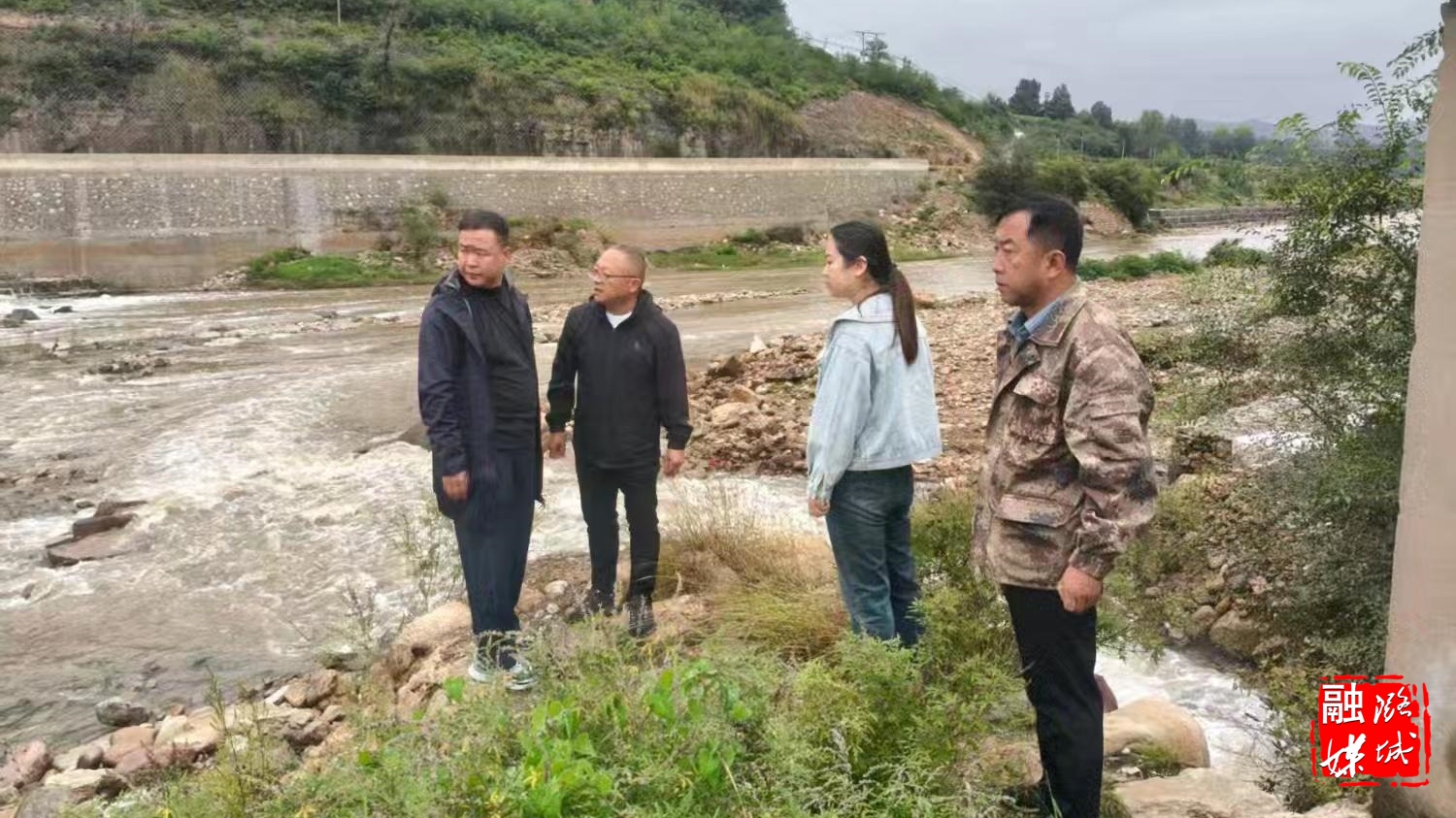 ▲辛安泉镇工作人员到浊漳河(辛安泉段)排查水坝安全隐患。