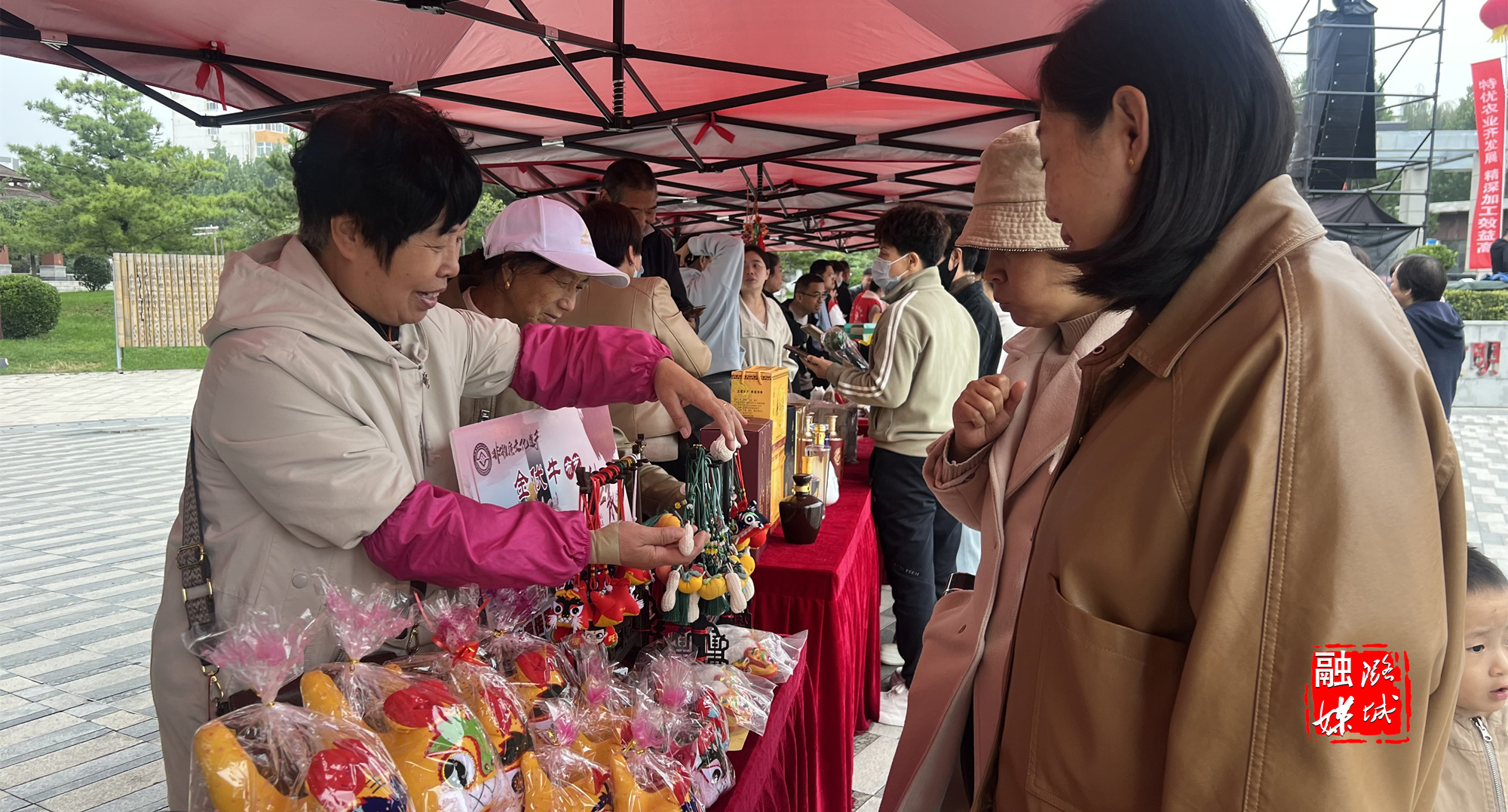 非遗、农产品展销区的20余个展台依次排开,汇聚了各乡镇(街道)及龙头企业的“特”“优”农产品与特色好物——史回香菇鲜嫩饱满、圣堂陈醋酸香浓郁、古城红薯粉条色泽透亮,还有葱酱王、冬播小米等,与此同时,布老虎等非遗手工艺品也同台亮相。琳琅满目的各色商品兼具实用价值与文化韵味,吸引不少市民上前购买。