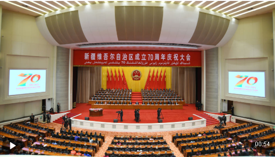 25日上午,习近平总书记在乌鲁木齐市出席新疆维吾尔自治区成立70周年庆祝大会,同新疆各族各界干部群众代表一道,热烈庆祝新疆维吾尔自治区成立70周年。