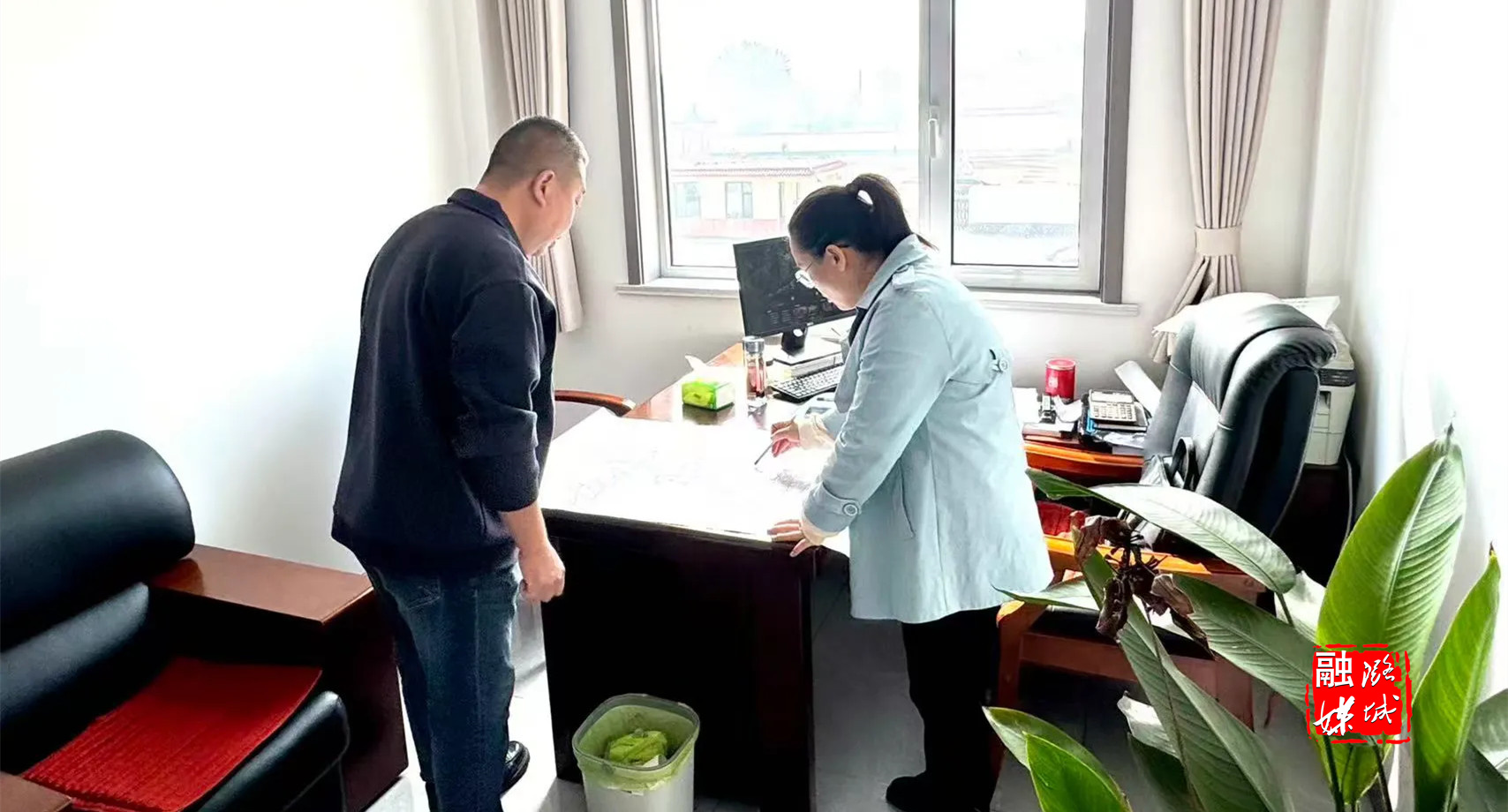 ▲店上镇相关负责人就集中供热工程管道设计相关事宜进行沟通交流。