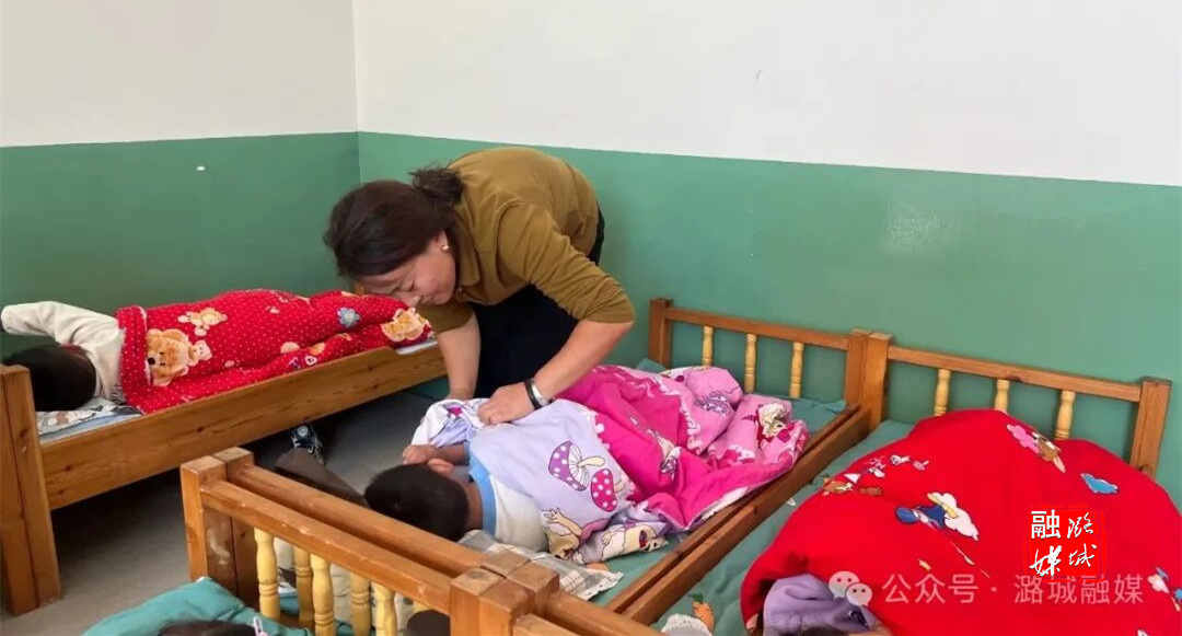 而在翟店街道贾村幼儿园的午托宿舍,吃过午餐的孩子们在老师的带领下准备休息。浅蓝色的遮光帘、带防滑踏板的上下铺、整齐摆放的小储物柜,让原本闲置的教室变身温馨“小窝”。