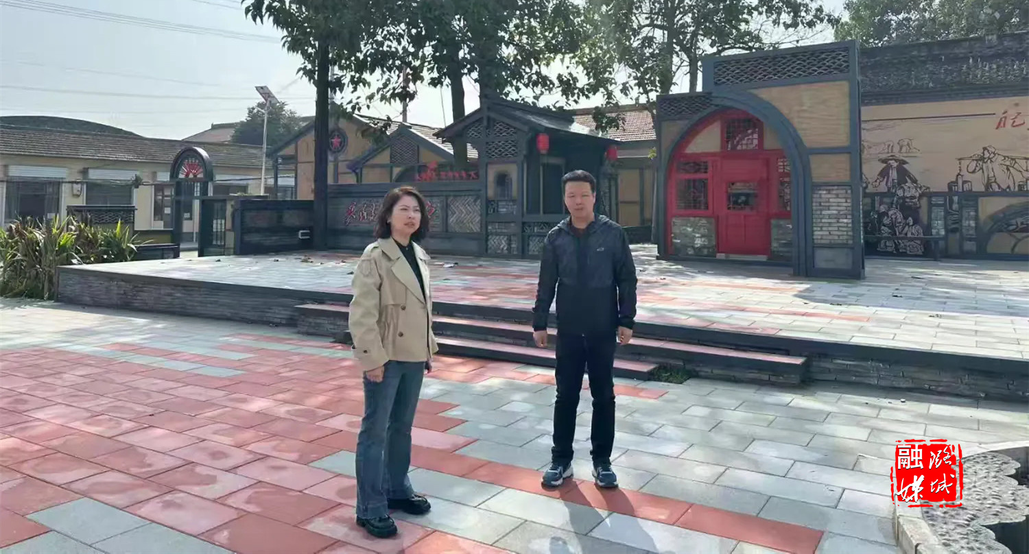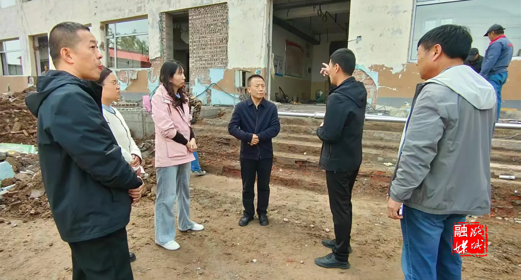 ▲辛安泉镇负责人实地查看石梁村主街道改造提升工程施工进展。